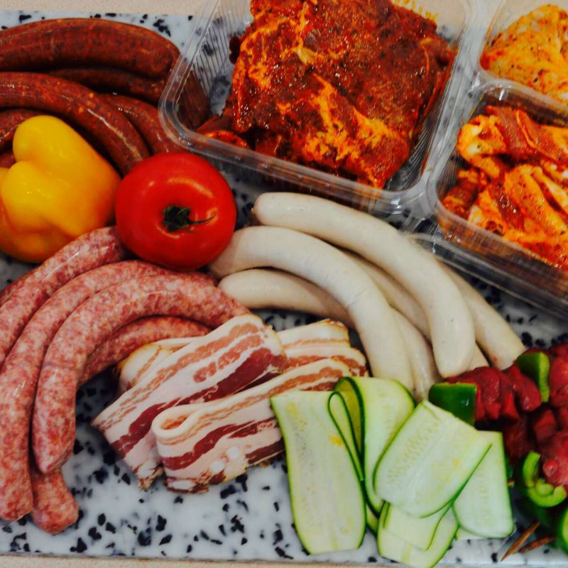 Le colis barbecue 5k complet idéal pour vos grillades estivales, composé de viandes variées (poulet, porc, saucisses selon l’abattage) et de légumes frais à griller.